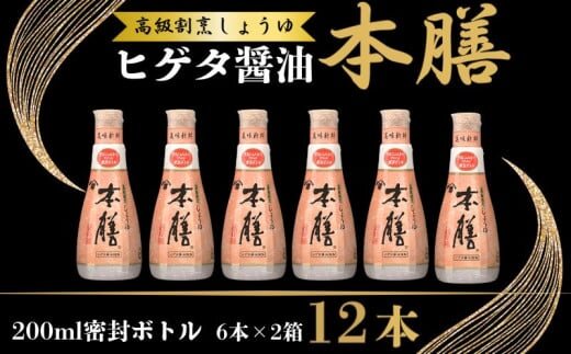 ヒゲタ醤油 本膳200ml密封ボトル 12本(6本×2箱)セット しょうゆ 醤油 調味料 日用 料理 キッチン 家庭用 おかず おつまみ 惣菜 お取り寄せ ギフト 贈答 プレゼント グルメ 常温 常温保存 送料無料 ふるさと納税 ふるさと納税醤油 千葉県 銚子市 株式会社 櫻井謙二商店