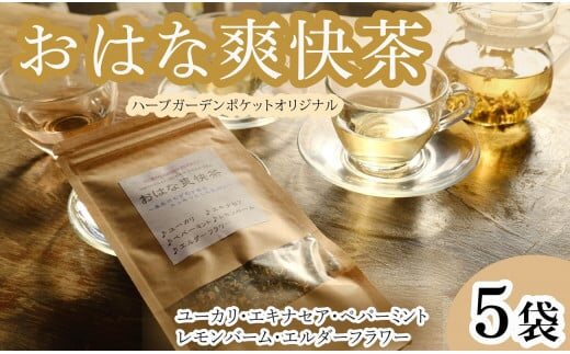 ハーブティー おはな爽快茶 5袋 ユーカリ ペパーミント エルダーフラワー エキナセア レモンバーム アイスティー デザート クッキー ティー ハーブ園 ブレンドティー ハーブ おやつ ケーキ クッキー プレゼント ギフト 贈物 贈り物 千葉県 銚子市 ハーブガーデンポケット