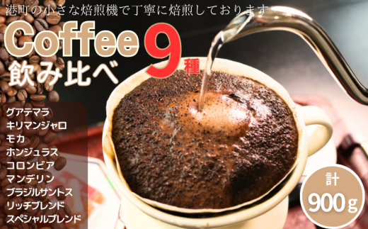 コーヒー 飲み比べ9種 約900g 各100g 粉 グアテマラ キリマンジャロ モカ ホンジュラス コロンビア マンデリン ブラジル・サントス リッチブレンド スペシャルブレンド 自家焙煎 飲み比べセット 珈琲 ドリップ 粉コーヒー 粉珈琲 コーヒー豆 挽き立て 挽きたて 焙煎仕立て 飲み比べ 飲料 コーヒー飲料 デザート ギフト 贈答 お取り寄せ ふるさと納税 千葉県 銚子市 ティピカ