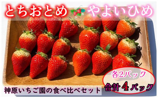 とちおとめ やよいひめ イチゴ 苺 いちご 食べ比べ セット 食べくらべ 神原いちご園 こだわり 新鮮 朝摘み 朝採り 産直 産地直送 安心安全 果物 フルーツ ストロベリー 千葉県 贈答箱 合計約1kg とちおとめ250g×2パック やよいひめ250g×2パック(パック、ビニール含む)