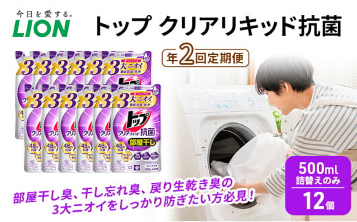 年2回定期便 トップ クリアリキッド 抗菌 500ml 詰替えのみ 12個 ライオン 洗濯 洗濯用洗剤 洗浄 消臭 抗菌 ウイルス除去 液体 スタンダード 詰め替え セット 日用品[№5689-1381]
