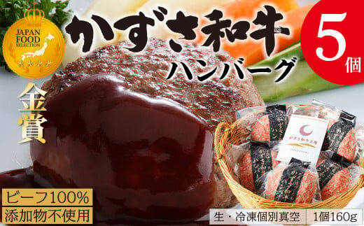 かずさ和牛 ブランド和牛 黒毛和牛 銘柄牛 ハンバーグ 160g 5個 小分け 真空パック 個包装 化粧箱入り 国産 和牛 牛肉 肉 ビーフ オールビーフ 生 冷凍 贈答用 家庭用 お歳暮 お中元 プレゼント 詰め合わせ 詰合せ ごちそう おすすめ 配送日 到着日 指定 ジューシー ジャパン・フード・セレクション 金賞 千葉県