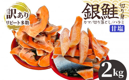 【訳あり】銀鮭甘塩 カマ1kg&切り落とし(ハラミ入り)1kg 計2kg
