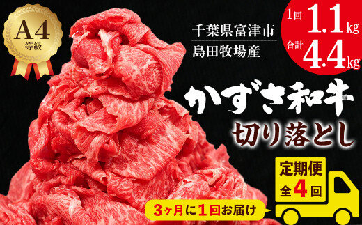 【定期便 全4回/3ヶ月に1回お届け】「かずさ和牛」切り落とし 1.1kg 総計4.4kg
