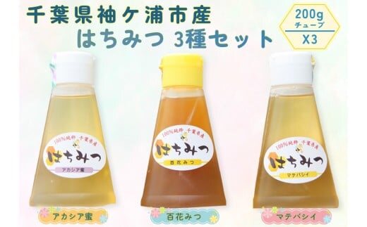 袖ケ浦市産 純粋はちみつ 200gチューブ 3種セット [0465]