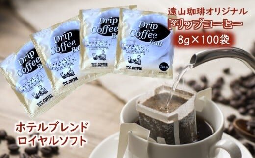 ドリップコーヒーバッグ ホテルブレンドロイヤルソフト 1杯8g×100袋 直火焙煎 大容量 遠山珈琲