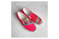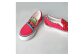赤、ピンク系カラーをベースにハート、ドット柄が目を引く一足です。