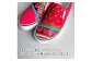 赤、ピンク系カラーをベースにハート、ドット柄が目を引く一足です。