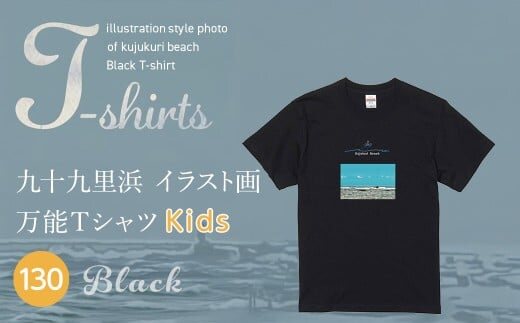 九十九里浜Art オリジナルTシャツ ブラック(イラスト画)【キッズ】130cm SMBE016-3