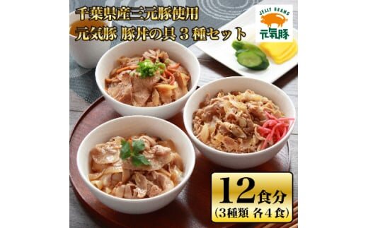 <千葉県多古町産>元気豚 豚丼の具 3種セット(3種合計12食入り)【1223561】
