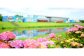 町の中央には、穏やかな川面を見せる「栗山川」が南北に流れ、川沿いには「あじさい遊歩道」が続き、菜の花やコスモス畑の中に「道の駅あじさい館」がにぎわいを見せています。