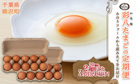 【みのりファーム】 2週間ごとお届け!「彩八(いろは)」たまご 20個 とれたて定期便 計6回(3ヶ月分) 千葉県 睦沢町 卵 F21G-227