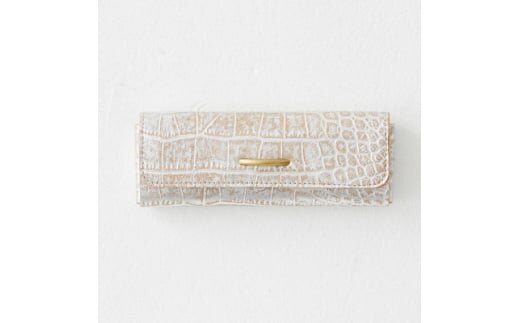 本体は、牛革にクロコの型押しとメタリックな箔加工を施した後、手作業で箔を少し荒らすことで輝きを抑えた上品な印象に仕上がっています。