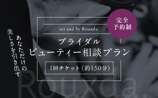 港区のビューティーサロン「set and by Rouxda.」で提供する、結婚準備中の方に向けた、プロのブライダルヘアメイクアーティストによるビューティーカウンセリング(約150分) ドレスに合うヘアメイクの提案や、撮影・挙式当日のビューティー段取り、肌や髪のケアスケジュール等を含めた個別アドバイスを行います。 相談後はオリジナルビューティープランシートをお渡しします。 |