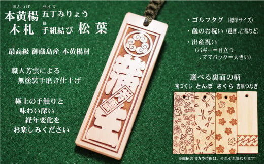 ゴルフ用など◎和風ネームタグ彫刻木札【家紋・短冊入】御蔵島本黄楊(フダヤドットコム.五丁みりょう)(紐:松葉、和柄:吉原つなぎ)