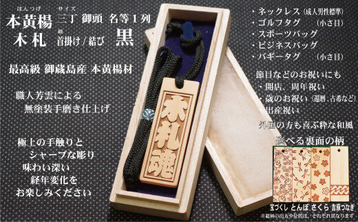 本黄楊 三丁御頭サイズ1個 ・ネックレス用首掛け紐 ・ネームタグ用結び紐 ・桐箱入(スリーブ・手提げ袋) ※ネックレスサイズ:男性定番サイズ ※ネームタグ用結び紐サイズ:縦75mm×横25mm×厚み5mm ※紐カラー:黒 ※和柄:とんぼ ※彫刻:8文字まで(アルファベットは横書き12文字まで(大文字小文字区別有)) |