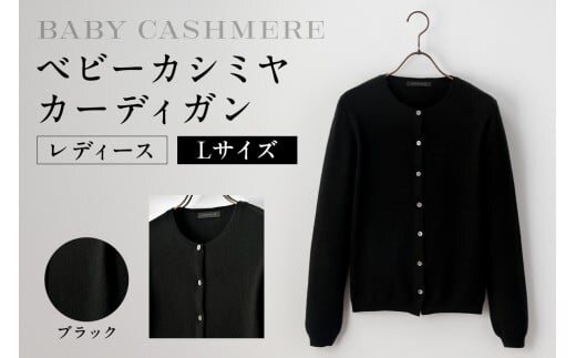 ベビーカシミヤ カーディガン レディース Lサイズ 【ブラック】 【カシミヤ 天然素材 カーディガン 服 国産 国内製造 ベビーカシミヤ】