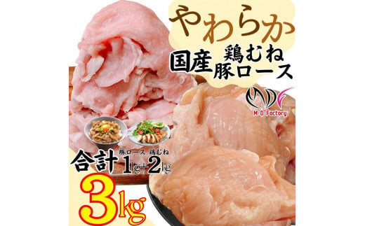 【ふるさと納税】やわらか鶏むね(国産)約2kg(1パック)&やわらか豚ロース(国産)約1kg(500g×2パック)