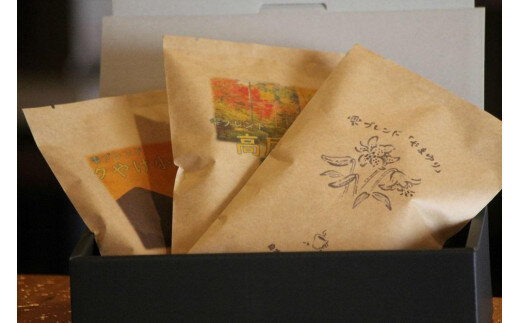 雫ブレンドやまゆり、高尾山、夕やけ小やけの3種セットです。 …