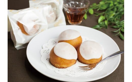 町田産の柚子「花柚子」と花柚子から出来たお酒を使用した。爽やかな香りの柚子ケーキです。花柚子の別名「ハナユ」と名付けました。