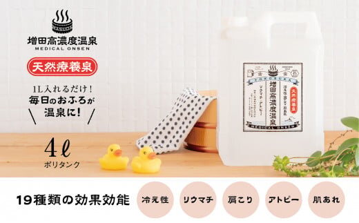 増田高濃度温泉 天然温泉 4Lポリタンク 温浴 疲労 回復 おんせん 入浴 入浴剤 バスタイム 美容 肌 温泉 関節 神経 健康 潤い 弱アルカリ性 クレンジング 高濃度 肩こり 腰痛 イオン 風呂 ふろ 冬 冷え性 美人 湯 肌あれ 肌荒れ【増田商事株式会社】 [AKCM002]