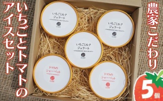 いちご&トマトのアイス 5個 セット イチゴ ミルク ジェラート シャーベット サニーオレンジ 苺 ミニトマト 濃厚 完熟 爽やか さっぱり 野菜 やさい 果物 くだもの フルーツ 甘み 酸味 味わい リコピン ビタミンC 美容 オリジナル 井出農園 神奈川 湘南 藤沢