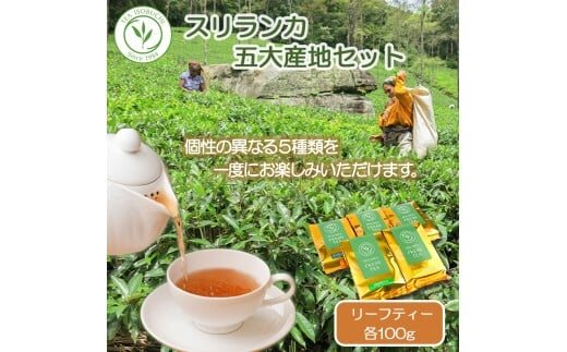 紅茶 茶葉 お茶 茶 紅茶セット ティー セット 100g × 5袋 ギフト プレゼント フレッシュティー スリランカ フレッシュ 新鮮 香り 風味 5大産地 紅茶専門店 イソブチカンパニー 神奈川 湘南 藤沢 贈り物 お土産 リーフティー ミルクティー ヌワラエリア ウバ ディンブラ キャンディ ルフナ