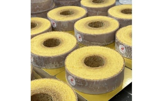 (米粉のバームクーヘン)鶏卵(国産)、砂糖、バター、ショートニング、生クリーム、米粉、米澱粉、アーモンドパウダー、洋酒、餅粉加工澱粉調整品(餅粉・寒天)、塩/加工澱粉、膨張剤、乳化剤、香料、増粘多糖類(一部に鶏卵、乳成分を含む)(ガトーピレネー)鶏卵(国産)砂糖、発酵バター、ショートニング、米粉、アーモンドパウダー、水飴、脱脂粉乳、塩、洋酒、レモン果汁/トレハロース、加工澱粉、膨張剤、乳化剤、香料、増粘剤、アルギン酸Na,着色料(カロチノイド)(一部に鶏卵・乳成分を含む)