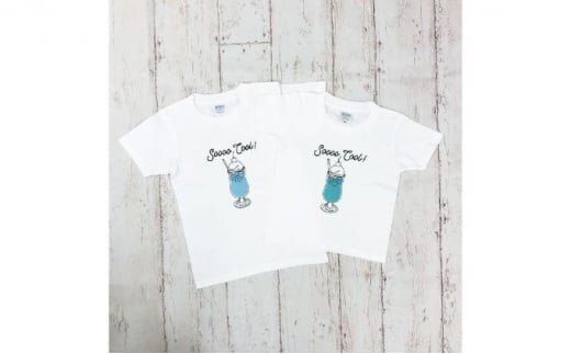 2人兄弟姉妹でおそろい /クリームソーダ グリーン(小)×ブルー(大)/ Tシャツ2枚組ギフトセット(80cm×110cm) [№5875-7305]0661