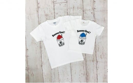 2人兄弟姉妹でおそろい /かき氷 ブルー(小)×レッド(大)/ Tシャツ2枚組ギフトセット(110cm×120cm) [№5875-7401]0665