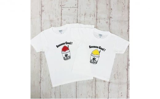 2人兄弟姉妹でおそろい /かき氷 イエロー(小)×レッド(大)/ Tシャツ2枚組ギフトセット(80cm×90cm) [№5875-7423]0667