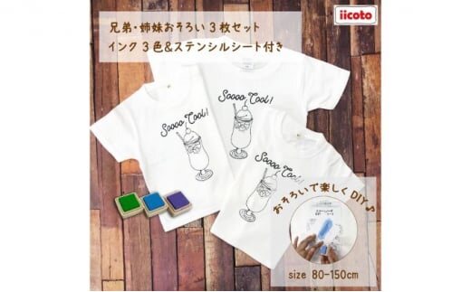3人兄弟姉妹でおそろい /DIYペイント クリームソーダ/ Tシャツ3枚組ギフトセット(80cm×90cm×110cm) [№5875-7484]0670
