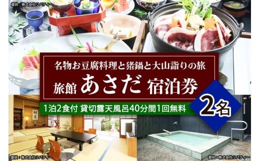 名物お豆腐料理と猪鍋と大山詣りの旅 ペア宿泊券 旅館あさだ [0112]