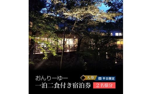 ★レビューキャンペーン実施中★平日限定 おんりーゆー 1泊2食付きペアご宿泊券【大雄】【温泉 サウナ 宿泊 おんりーゆー 1泊2食付きペアご宿泊券 大雄 広葉樹林に囲まれ森林浴を楽しみながらゆっくりと長湯を楽しめる 神奈川県 南足柄市 】