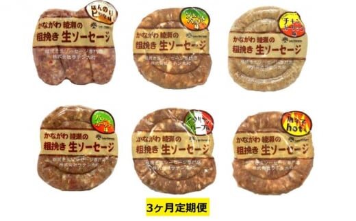 ソーセージ 定期便 3ヶ月 かながわ綾瀬 粗挽き 生ソーセージ 6種 セット 肉 お肉 豚肉 加工品 惣菜 おかず 詰め合わせ 冷凍 アウトドア バーベキュー キャンプ BBQ お酒のつまみ ウィンナー ウインナー 3回 定期ス