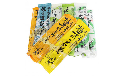 ■内容量/原産地 ・海と山のコラボ焼き海苔そば200g×2束(そば粉/北海道、小麦粉/北海道、焼き海苔/日本) ・季穂よもぎそば240g×2束(そば粉/北海道、小麦粉/北海道、よもぎ/青森) ・季穂よもぎうどん240g×2束(小麦粉/北海道) ・季穂足柄茶そば200g×2束(そば粉/北海道、小麦粉/北海道、抹茶/静岡、神奈川) ・さっぱり柚子切りうどん200g×2束(小麦粉/北海道、柚子/日本) ・さっぱり柚子切りそうめん200g×2束(小麦粉/北海道、柚子/日本) 合計12束 〔製造地/神奈川県中井町〕 ■原材料 ・海と山のコラボ焼き海苔そば(小麦粉、そば粉、焼き海苔粉末、クロレラ色素、食塩) ・季穂よもぎそば(小麦粉、そば粉、よもぎ粉末、クロレラ色素、食塩) ・季穂よもぎうどん(小麦粉、よもぎ粉末、クロレラ色素) ・季穂足柄茶そば(小麦粉、そば粉、抹茶、クロレラ色素、食塩) ・さっぱり柚子切りうどん(小麦粉、柚子粉末、クチナシ色素、食塩) ・さっぱり柚子切りそうめん(小麦粉、柚子粉末、クチナシ色素、食塩) |