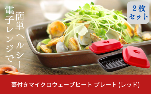 蓋付き電子レンジ調理プレート マイクロウェーブヒート プレート レッド 2枚セット 時短調理 キッチン用品 マイクロウェーブヒートプレート