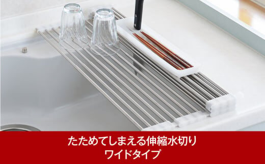 たためてしまえる伸縮水切り ワイドタイプ カトラリーケース付【013P051】