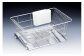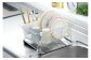 トレーが斜めになっているから、トレー内の水がシンク内に自然に流れて衛生的。幅26cmだからシンク横のわずかなスペースに置けます。たてに14本の線材がありますので、目が細かく、上の枠から内側にL字に曲がっておりますので、お皿を並べ易い構造です。