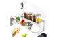 調理台に設置するだけで、家電、スパイス、調味料、キッチンツール、盛り付けのお皿や、鍋などを置くスペースが生まれ、お料理がグッとはかどります。