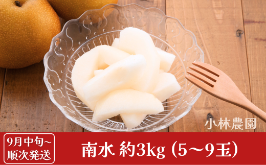 先行予約 和梨 南水 約3kg [9月中旬から発送予定] 令和7年度 新潟県産 梨 [小林農園] 【012S040】