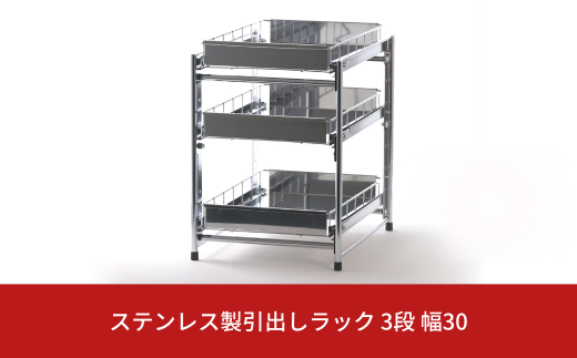 ステンレス製引出しラック 3段 幅30 キッチン用品 キッチン収納 燕三条製 [株式会社オビタス]【028S017】