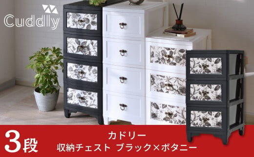 収納チェスト3段 ブラック×ボタニー【026S027】