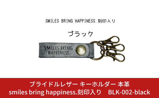 ブライドルレザー キーホルダー 本革 ブラック smiles bring happiness.刻印入り BLK-002-black 黒 メンズ レディース 【017S074】