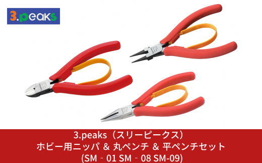 ホビー用ニッパ & 丸ペンチ & 平ペンチセット (SM‐01 SM‐08 SM-09) [3.peaks(スリーピークス)] 模型工具 プラモデル ニッパ ペンチ 【029S020】