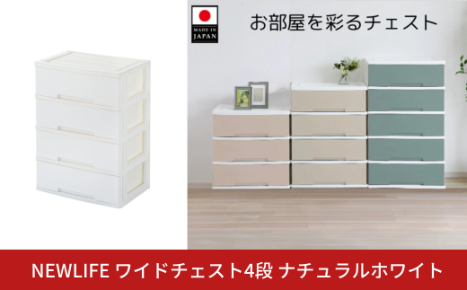 NEWLIFE ワイドチェスト収納4段 ナチュラルホワイト 収納ケース 衣装ケース プラスチック 新生活 引っ越し 大容量 引き出し プラスチック 収納棚 おしゃれ 押入れ 押し入れ収納 リビング収納 【014S095】