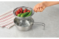 水切りや湯切りに便利な手付きザルと、保存に便利なシリコン蓋付き。