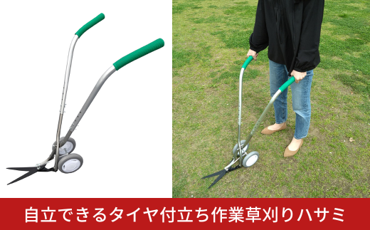 自立できるタイヤ付立ち作業草刈りハサミ 草刈り鋏 ガーデニング タイヤつき 除草 燕三条製 [株式会社オビタス]【040S031】
