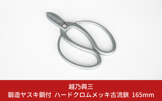 鍛造ヤスキ鋼付 ハードクロムメッキ古流鋏165mm [越乃興三] 【015S138】