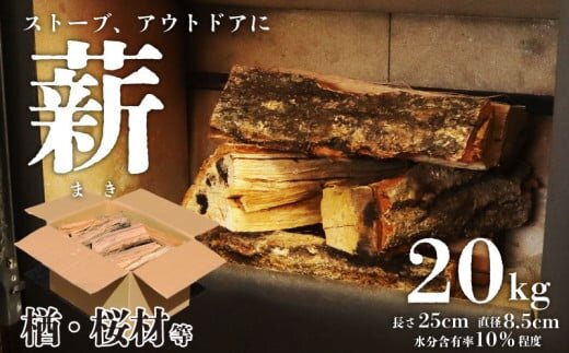 薪 20kg まき 楢 桜 楢材 桜材 ナラ材 ナラ 薪ストーブ キャンプ アウトドア ソロキャンプ 冬キャンプ 焚き火 かまど 広葉樹 ファイヤーワールド 新潟 新潟産 木材 新発田 間伐材